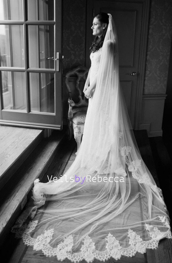 $101.19 – $299.19Price range: $101.19 through $299.191 tier Cathedral lace veil with lace from fingertip/wrist length,Partial lace cathedral wedding veil, long cathedral lace veil V638