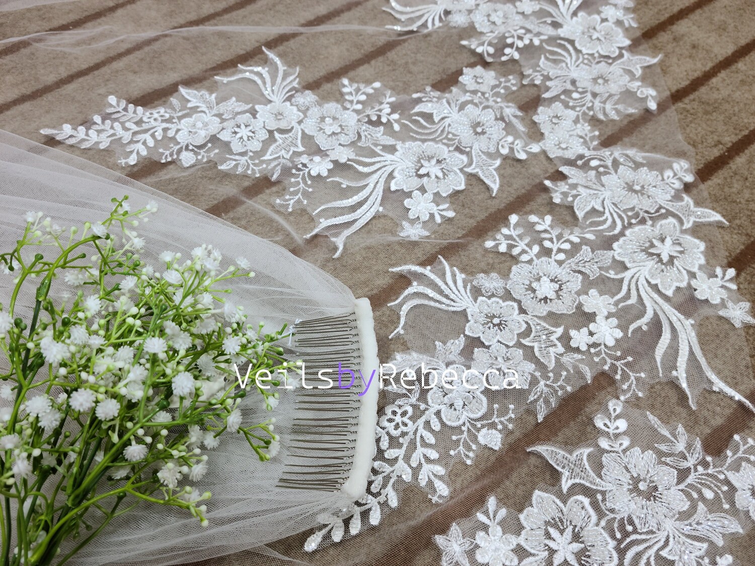 ***Comb: It is sewn to a silver metal comb for easy securing on your big wedding day. If you need gold metal comb, please let me know in your order.