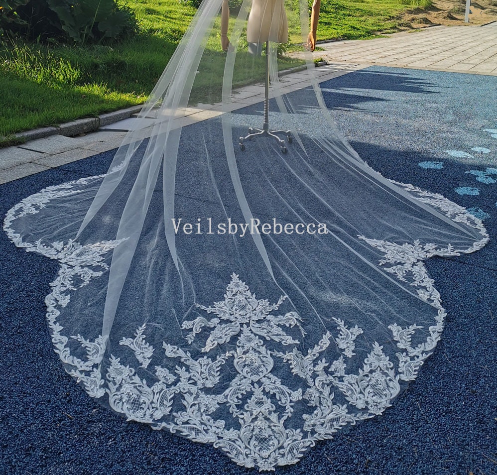 $154.12 – $646.35Price range: $154.12 through $646.351 tier cathedral wedding veil with lace trim,Alencon lace cathedral veil,cathedral wedding veil,lace bottom veil, partial lace veil V633