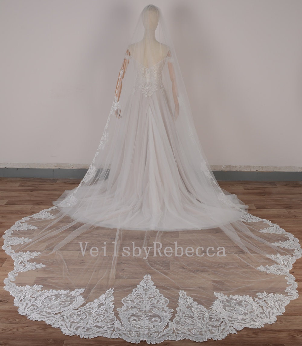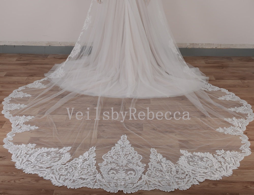$154.12 – $646.35Price range: $154.12 through $646.351 tier cathedral wedding veil with lace trim,Alencon lace cathedral veil,cathedral wedding veil,lace bottom veil, partial lace veil V633