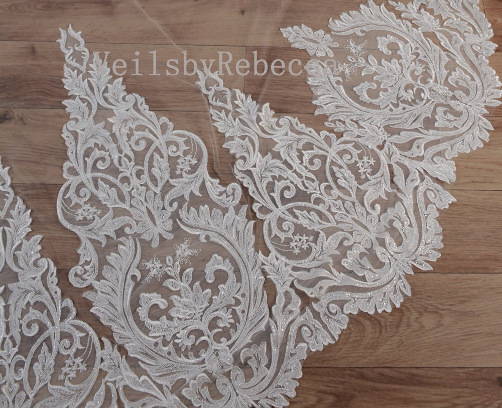 $196.23 – $370.47Price range: $196.23 through $370.471 tier partial wide Chantilly lace cathedral off white wedding veil, Chantilly eyelash lace bridal veil V612E