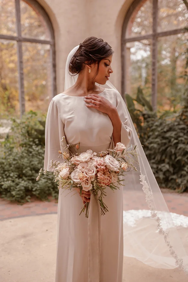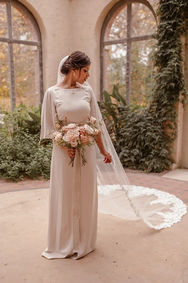 Top Tip – We always recommend having your veil at least 20cm longer than your train, but the Cecilia veil works particularly well with at least 50cm extensions. If you need help working out the perfect length, please get in touch.