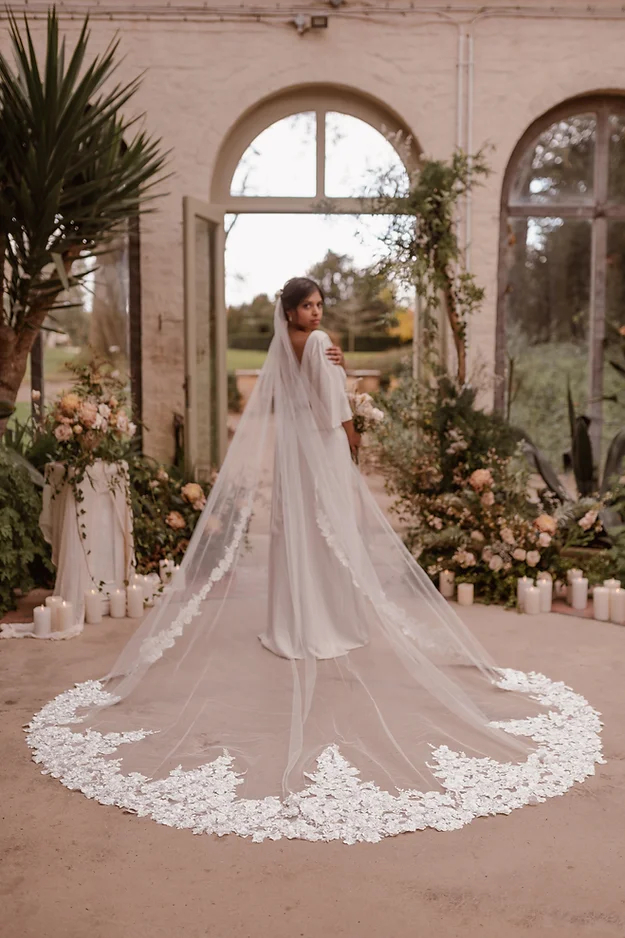 Top Tip – We always recommend having your veil at least 20cm longer than your train, but this veil works particularly well with at least 50cm extensions. If you need help working out the perfect length, please get in touch.