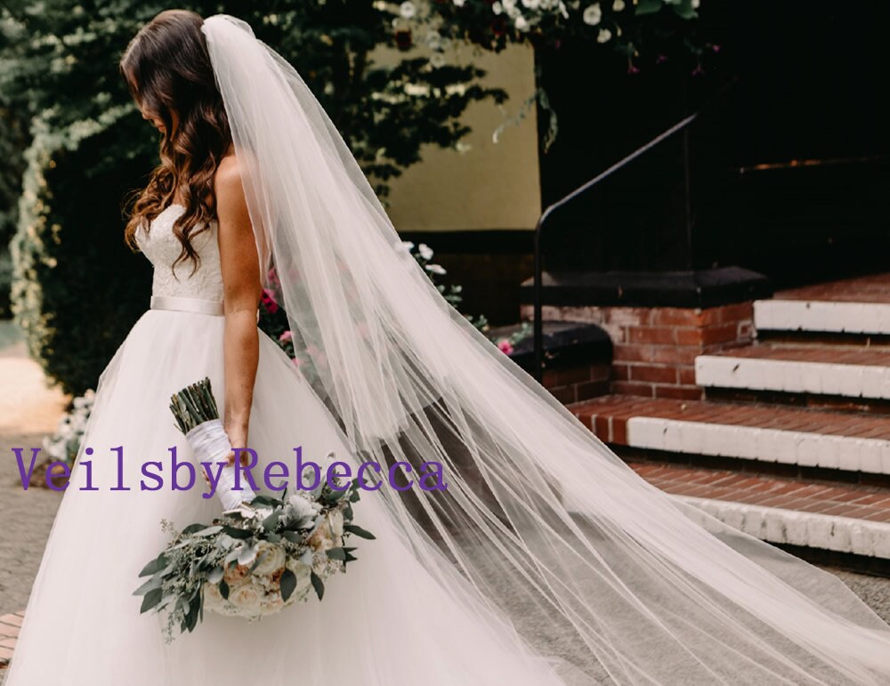 2 tiers cathedral tulle veil, simple tulle cathedral veil with blusher, plain tulle drop wedding veil in cathedral, long tulle veil V602